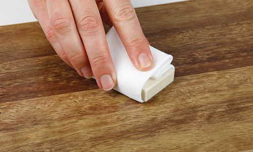 Stretch the Cotton Cloth tightly and in a single layer over the Felt Pad, then moisten it with Liquid Sandpaper. Use light pressure in circular motions to remove any grease around the area.
