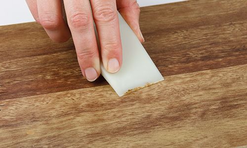 Using the edge of the Special Fillers Applicator, rub the applied wax in small circular motions with gentle pressure. Shave off any excess wax with the pointed grooves of the Special Fillers Applicator.