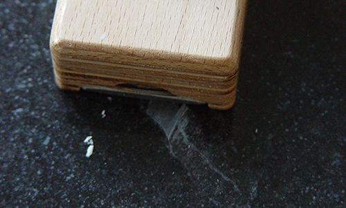 Remove any excess material with the Metal Planer using quick, light movements. For marble, we recommend using the Cuttlebone.