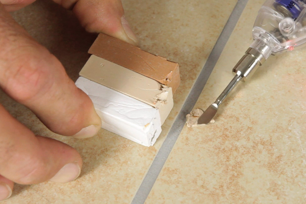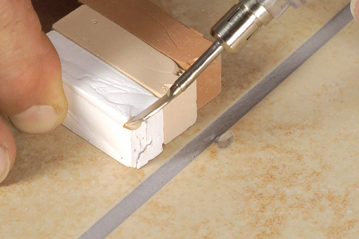 We work with the Ceramic Repair Kit (Teracotta Kit). The area to be repaired has to be clean, dry and free from grease. If necessary, remove any loose or sticking out particles. Choose matching colors. Take care to apply always several colors from light to dark.