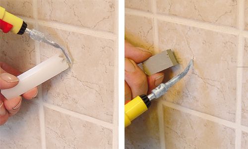 Use the hot tip of the Gas Heating Iron to apply the Ceramic Filler in the appropriate colour to the damage. Always work from light to dark. The different colours can also be mixed together to achieve the exact shade. Clean the melter tip after each melting process.