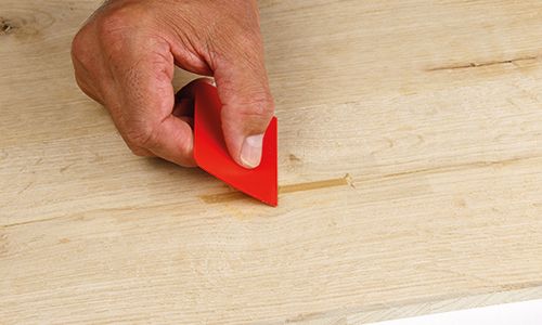 Smooth over the excess with a red spatula. For deeper joints, allow the filler to settle and reapply if necessary.