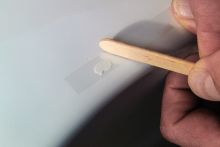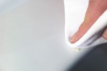 Apply a small amount of polishing paste to the repaired area and rub in with the cotton cloth in a circular motion using light pressure until the seheen matches the surrounding area. Clean away any polishes residue with a dry and clean part of the cotton cloth. Done! IMPORTANT: With damage of more than 1-1,5mm depth, it is necessary to work with several layers. Prefill and harden the damaged area (please see step 2-4) and repeat process.