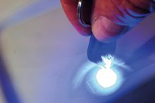 Cure the flled area by illuminating for approx. 5 - 10 minutes per cm² from a distance of not more than 1 cm. Curing time varies dependent on coat thickness. NOTE: If the filler no longer hardens, please replace the UV Lamp battery. IMPORTANT: Do not look directly into the LED Light, as this may lead to permanent eye damage.