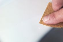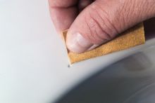 Use the Special Sandpaper to sand off excess material in a circular motion with light pressure until level. NOTE: Ensure not to sand through the filler!